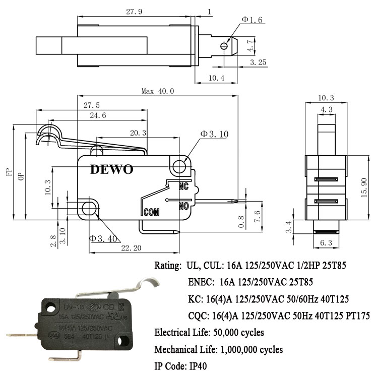Terminal type:187 quick connect terminal/250 quick connect / Solder terminal/ left side PCB terminal/ right side PCB terminal/ Screw terminal