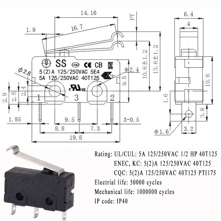 Terminal type:Solder terminal/Straight PCB terminal/110 quick connect terminal/ left side PCB terminal/ right side PCB terminal