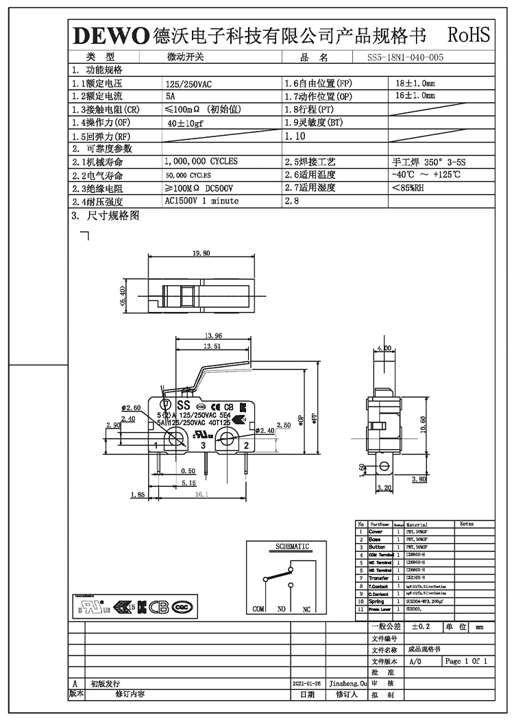 - DV micro switch