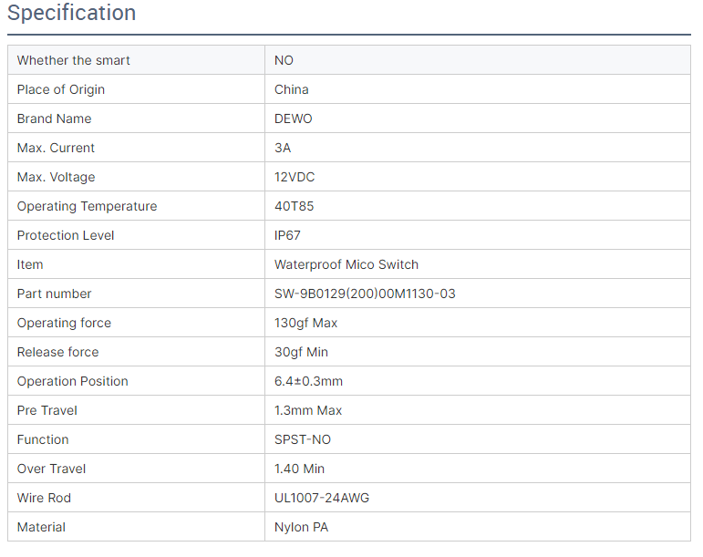 - Waterproof micro switch