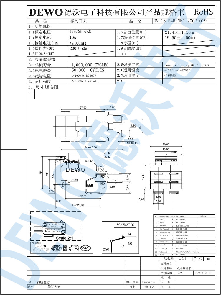 DV-16-B48-NN1-200E-019雙聯(lián)微動(dòng)開關(guān)