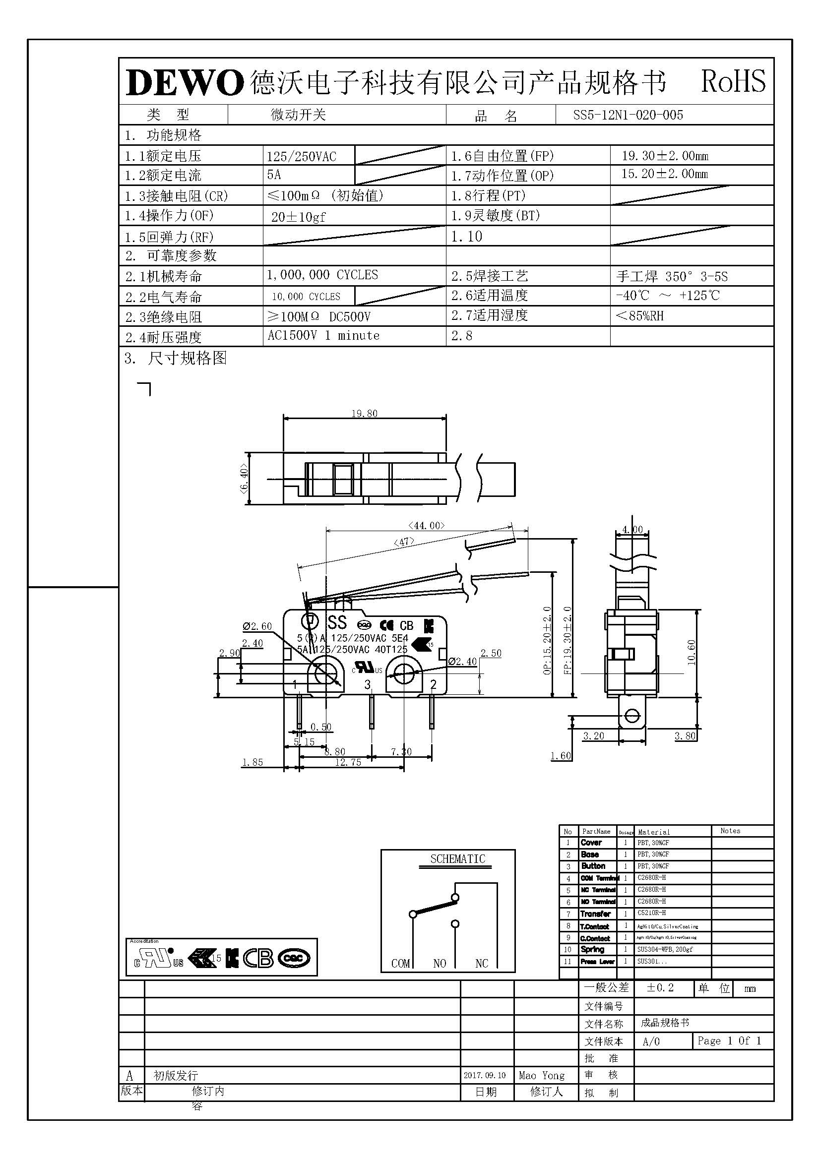 SS5-12N1-020-005微動(dòng)開(kāi)關(guān)
