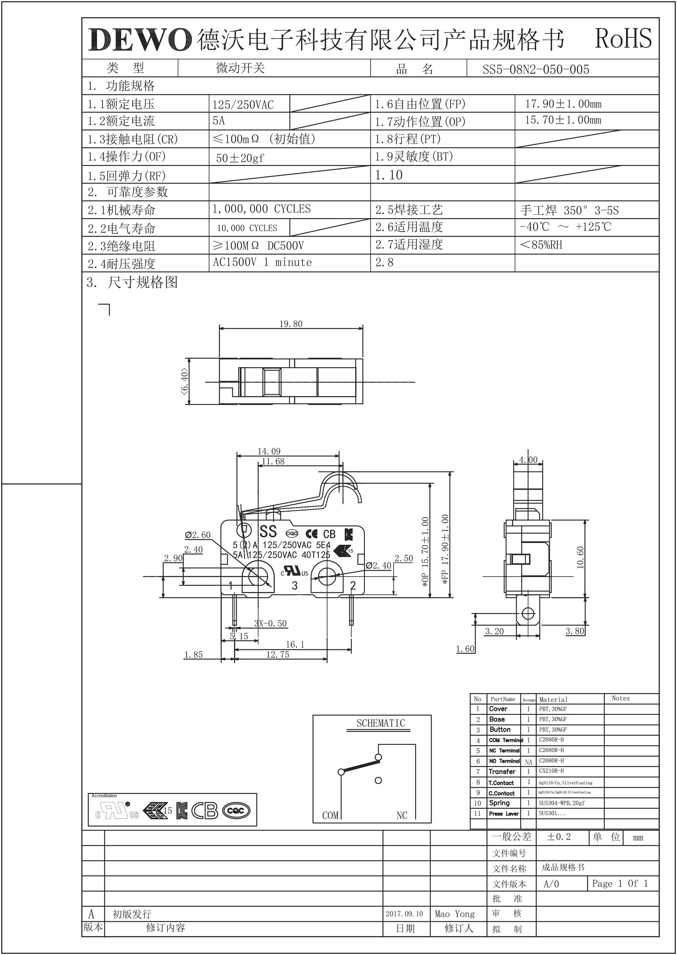 - DV型微動(dòng)開(kāi)關(guān)