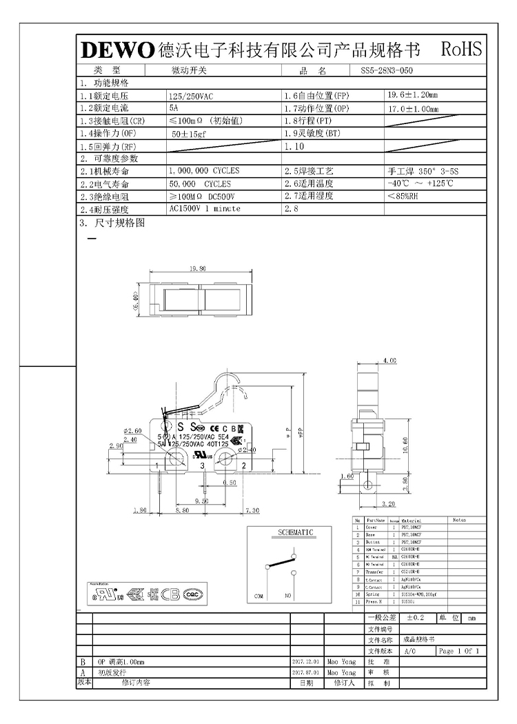 - DV型微動(dòng)開(kāi)關(guān)