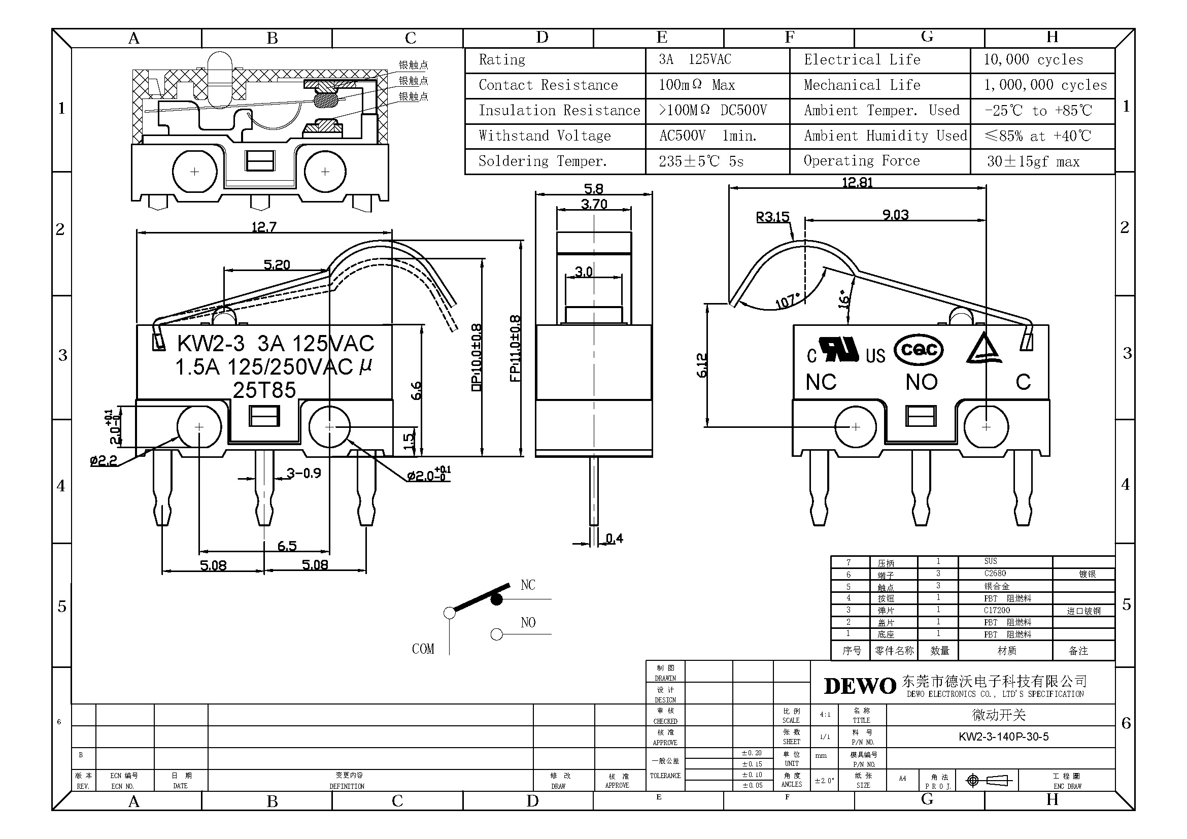 2.觸點材質(zhì):銀合金.