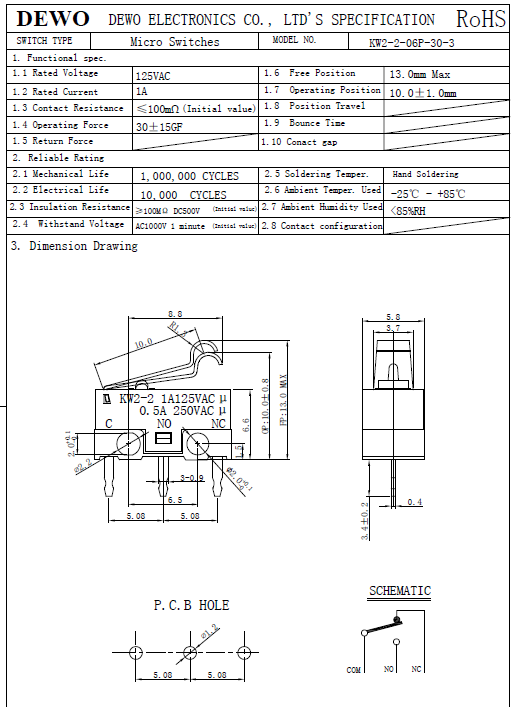 KW2-3-06P-30-5小型微動(dòng)開(kāi)關(guān)