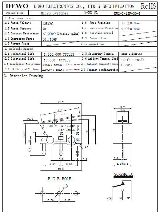 KW2-3-12P-30-5小型微動(dòng)開關(guān)