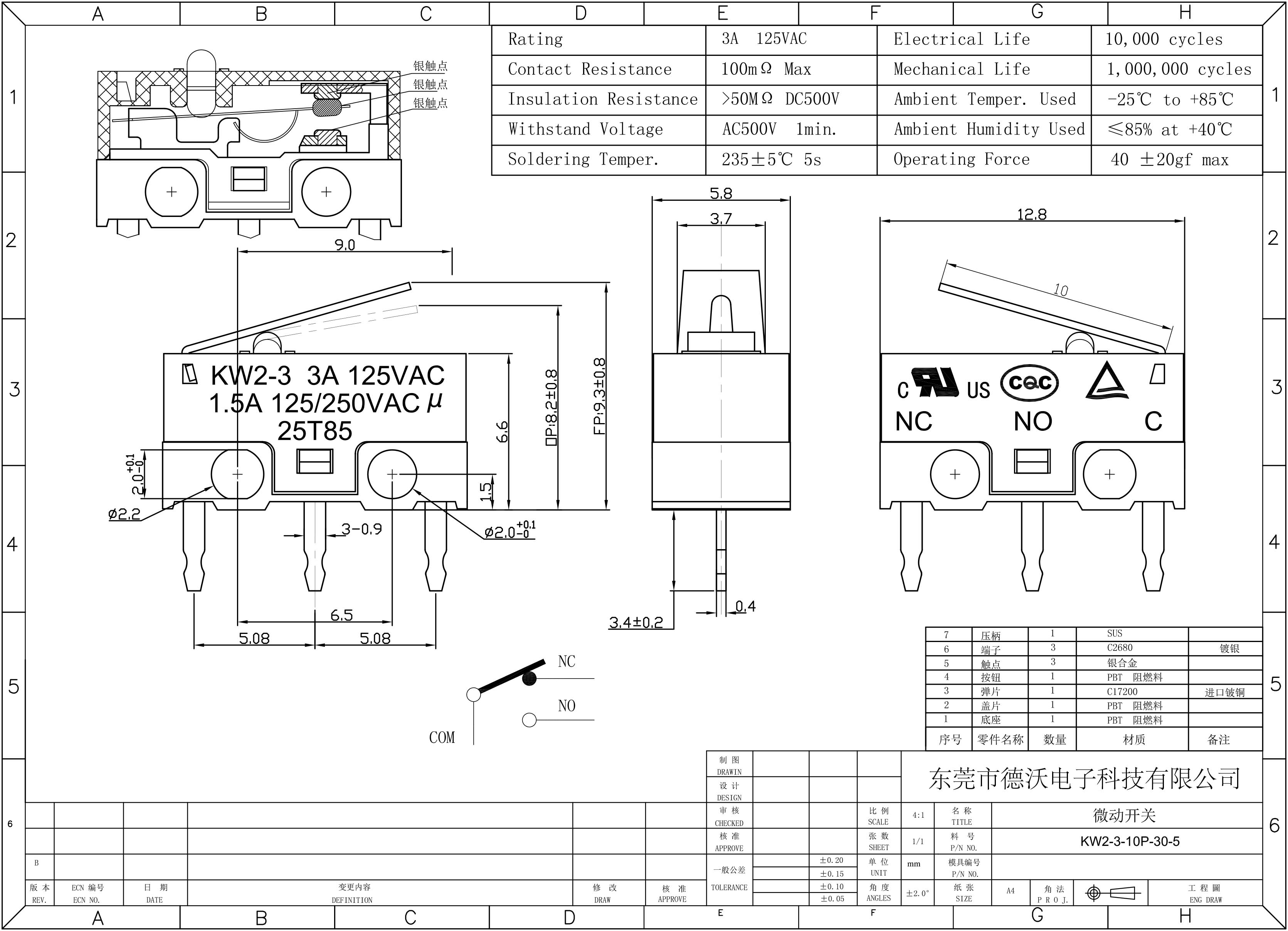 KW2-3-10P-30-5小型微動開關