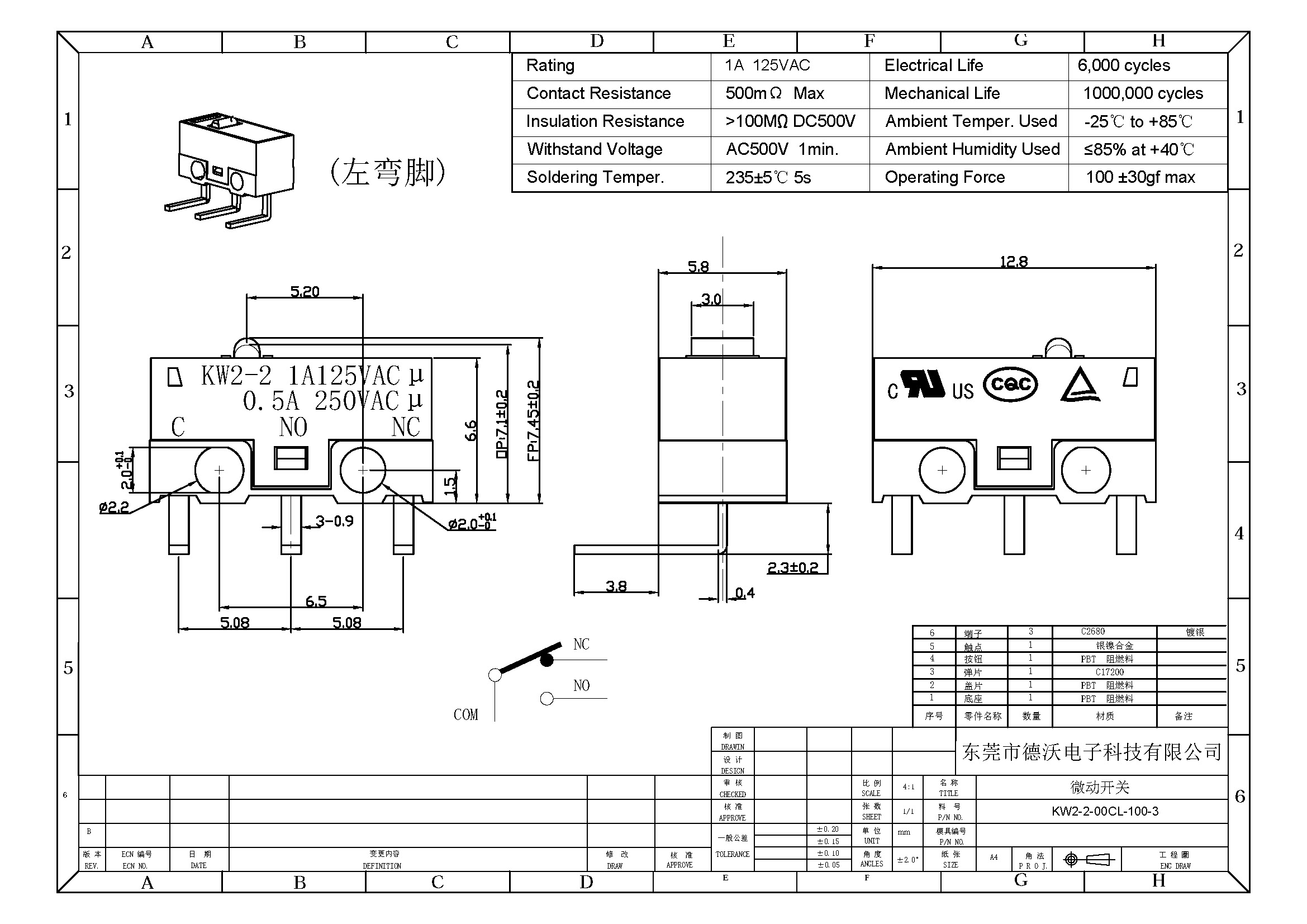 4.機(jī)械壽命:100萬(wàn)次.